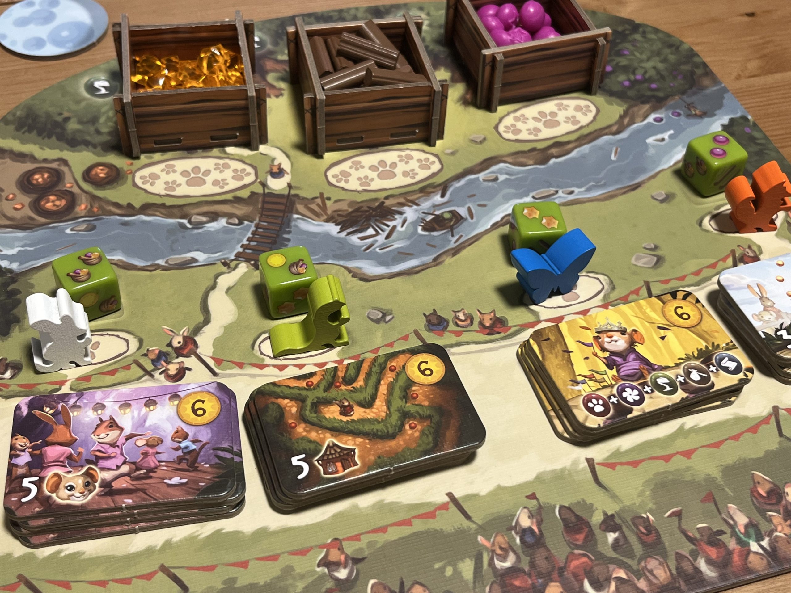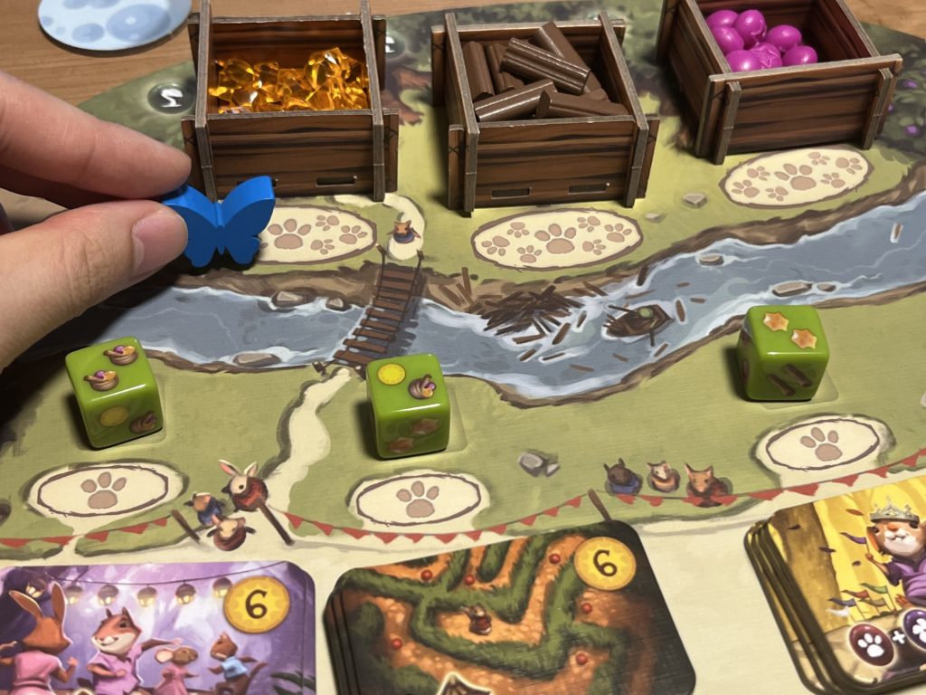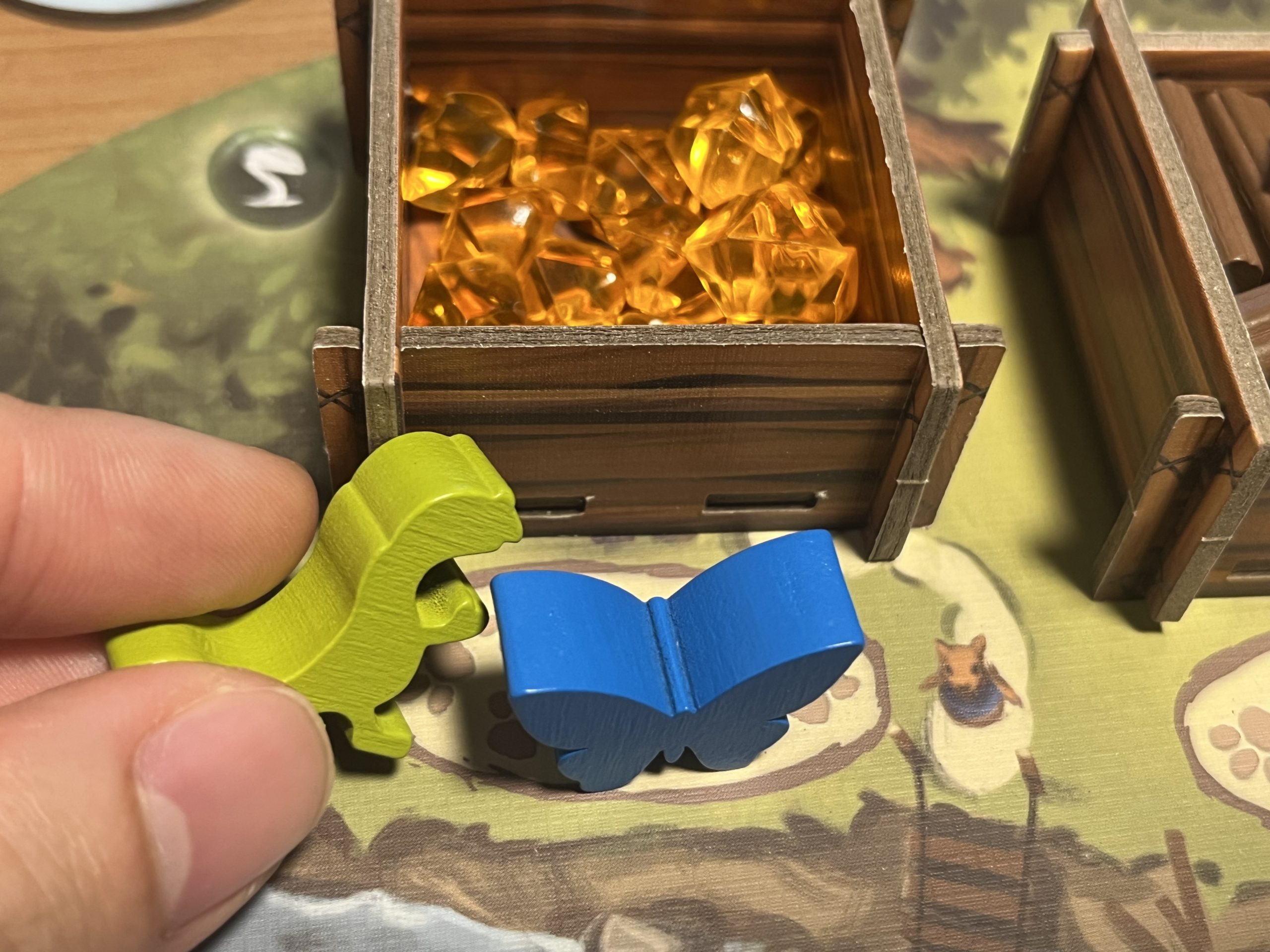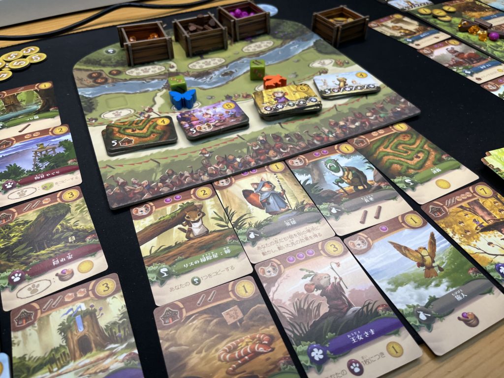 ・限られたスペースにコマを置いて資源を得る、というワーカープレイスメントの基礎の基礎