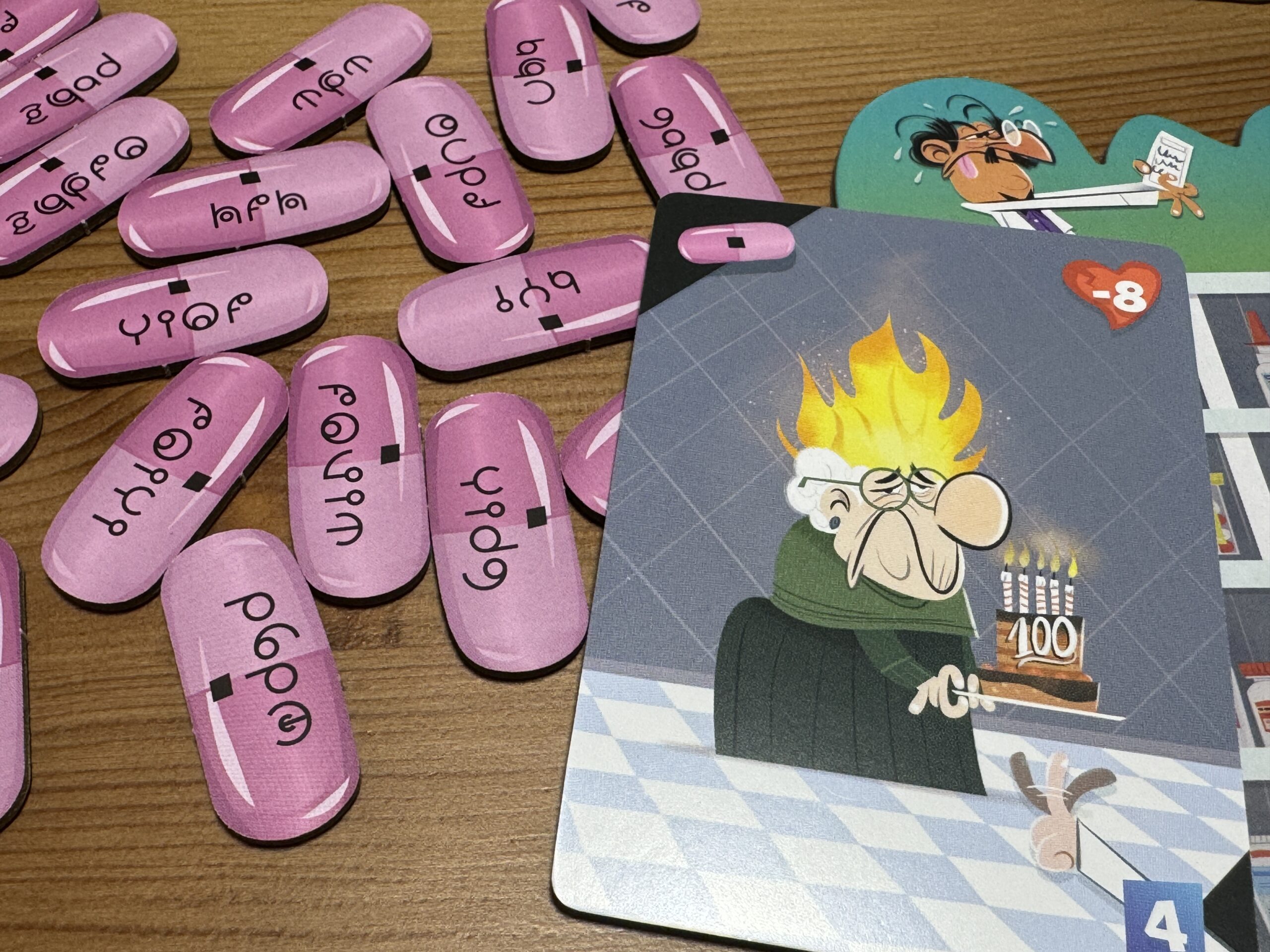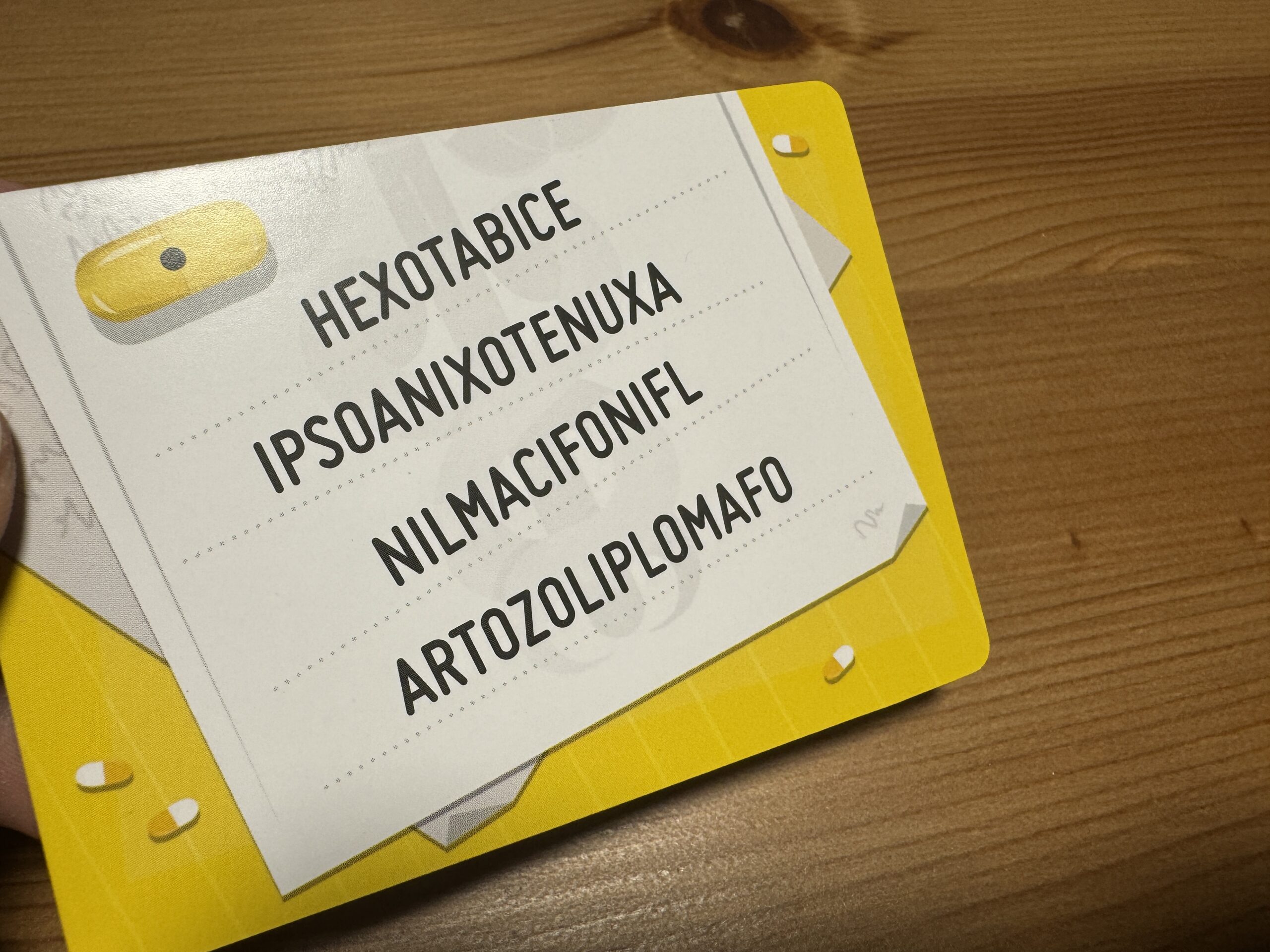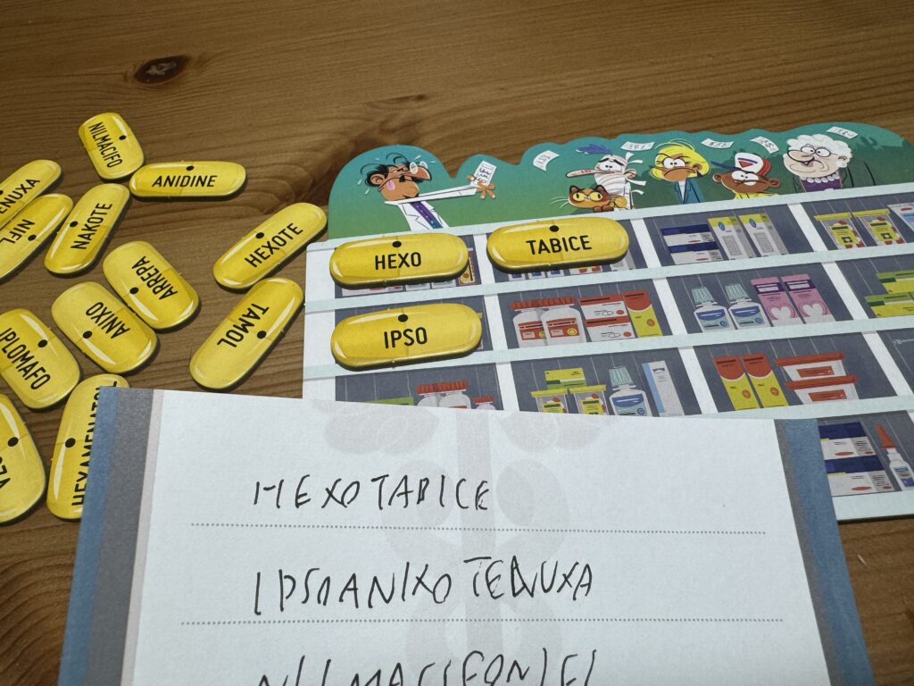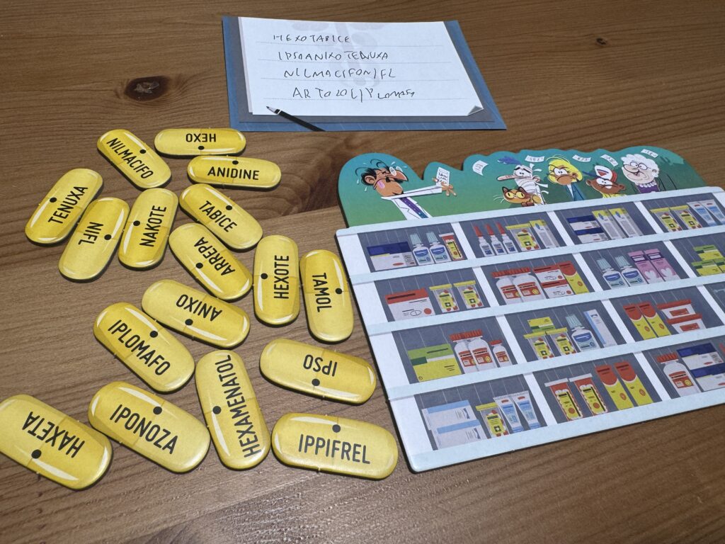 というわけで、ドクターの走り書きによる処方箋が完成しまして、これが薬剤師(残りのプレイヤー)たちへとポンと渡されます。