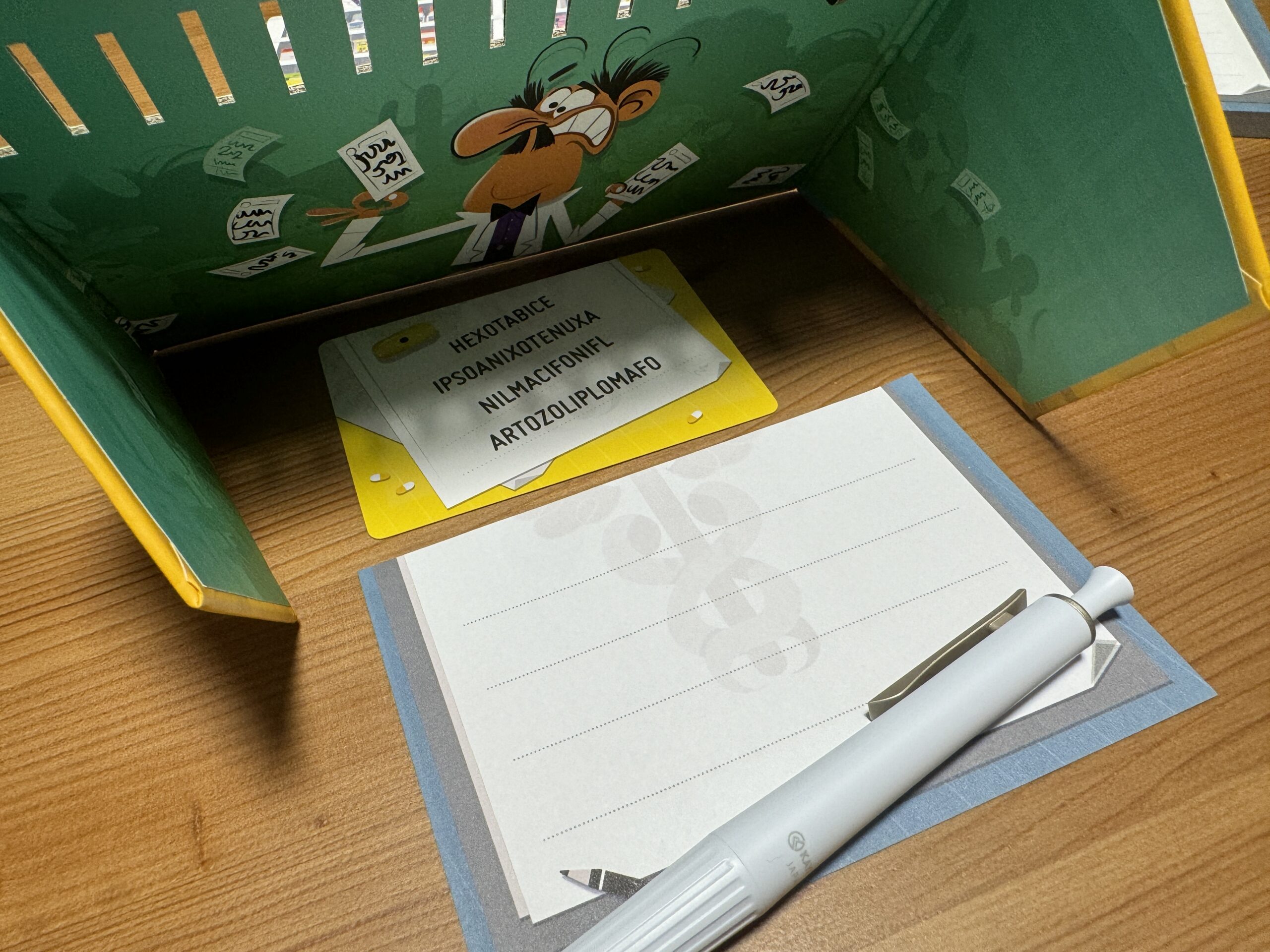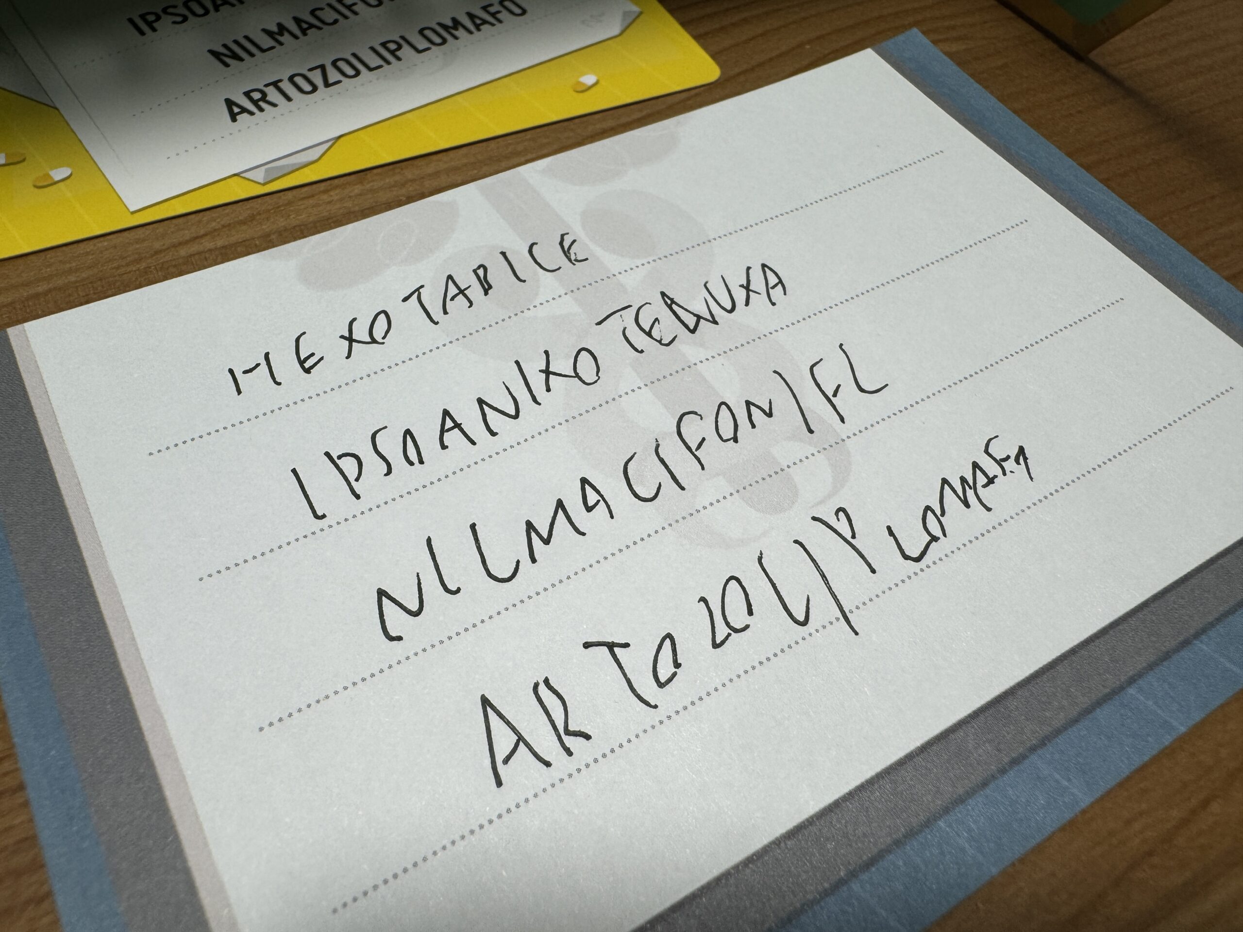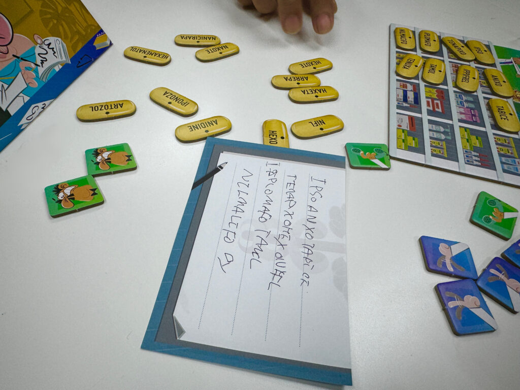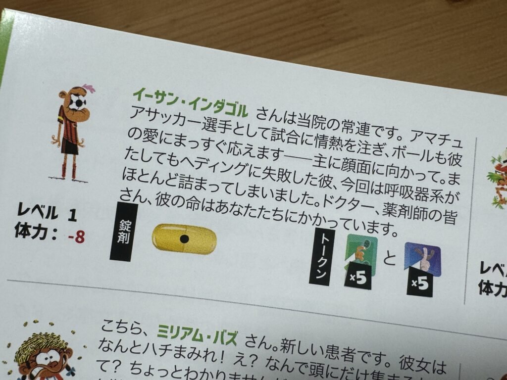というわけで、ドクターの走り書きによる処方箋が完成しまして、これが薬剤師(残りのプレイヤー)たちへとポンと渡されます。