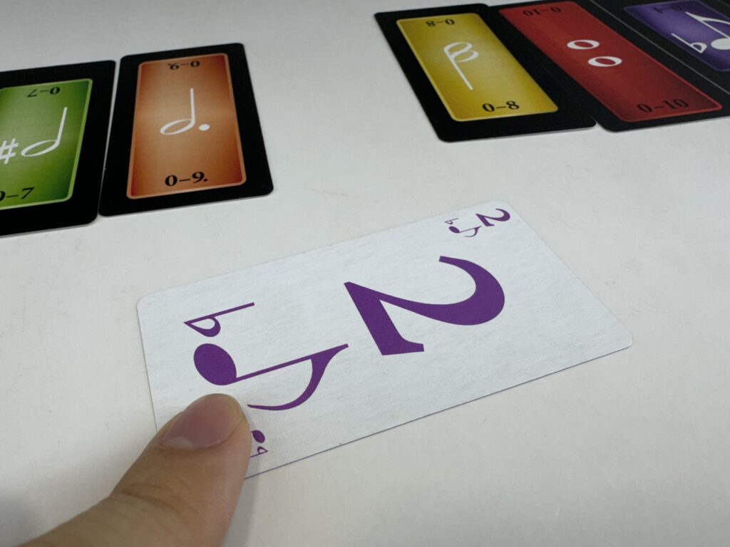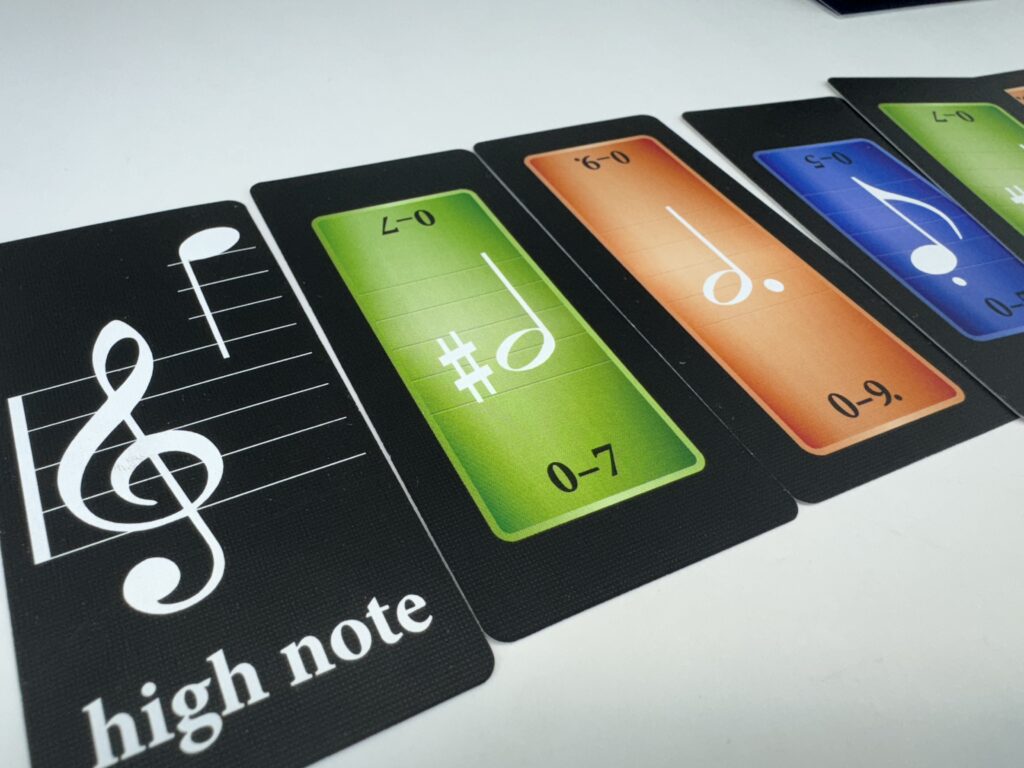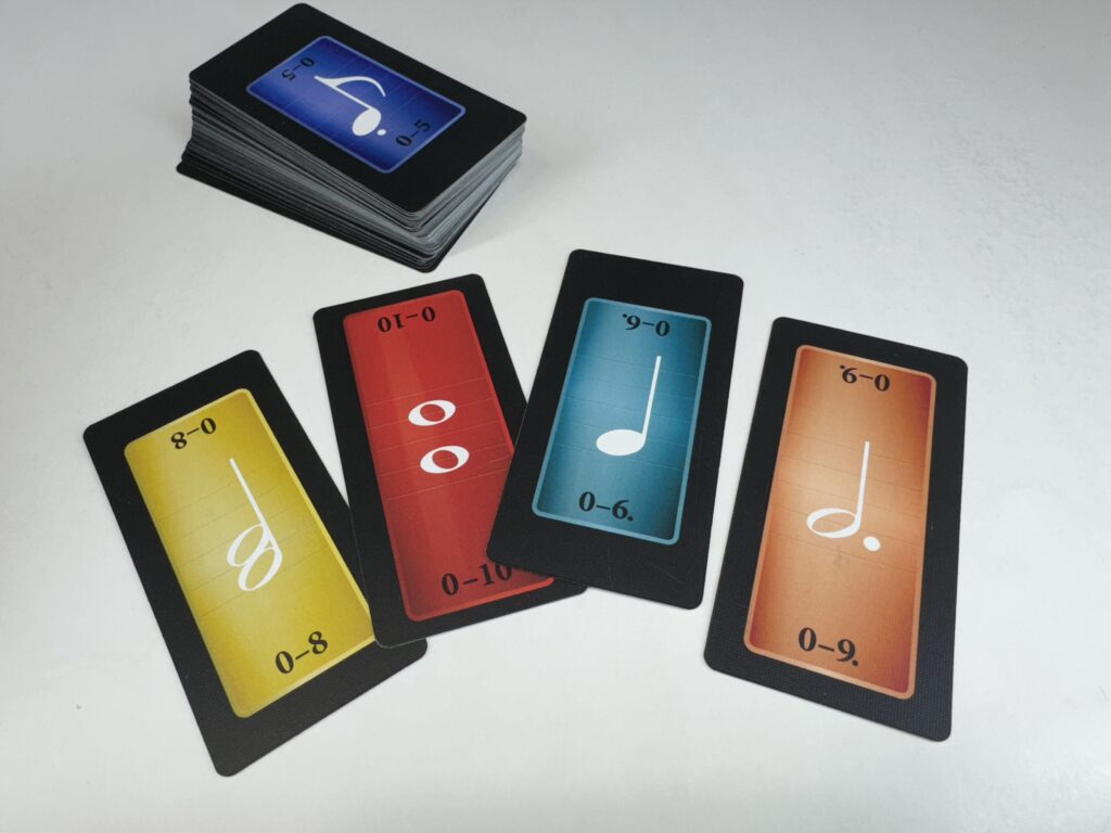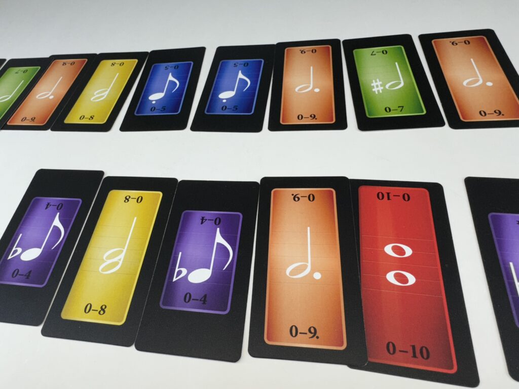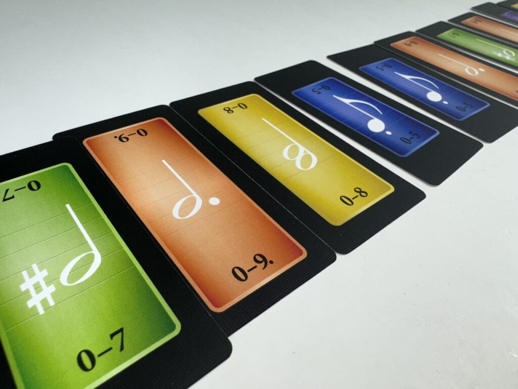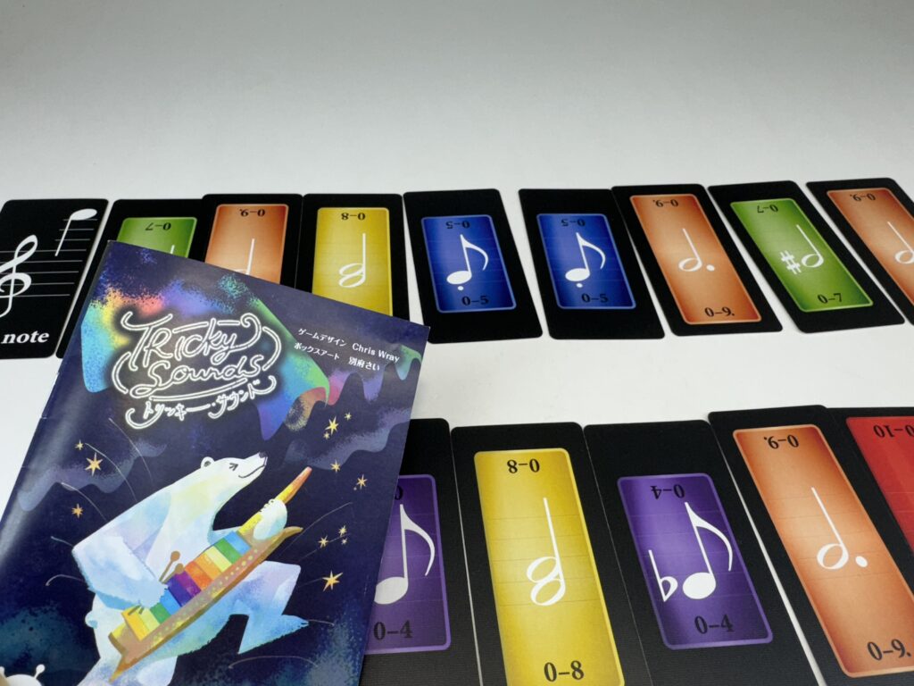 『トリッキー・サウンド』はトリックテイキングゲームとしても尖った部分がありますが、そもそも使用するカードがかなり尖っています。