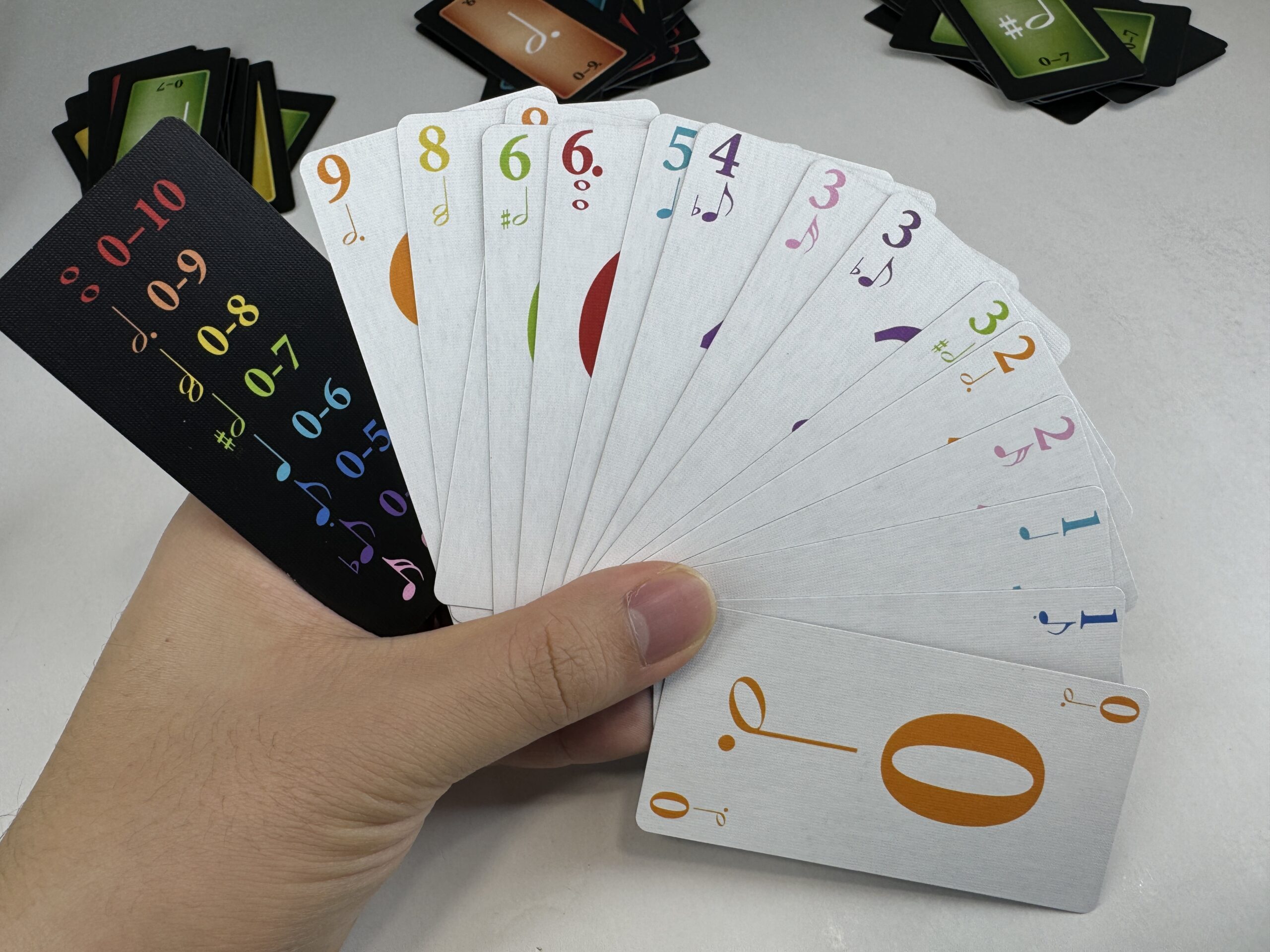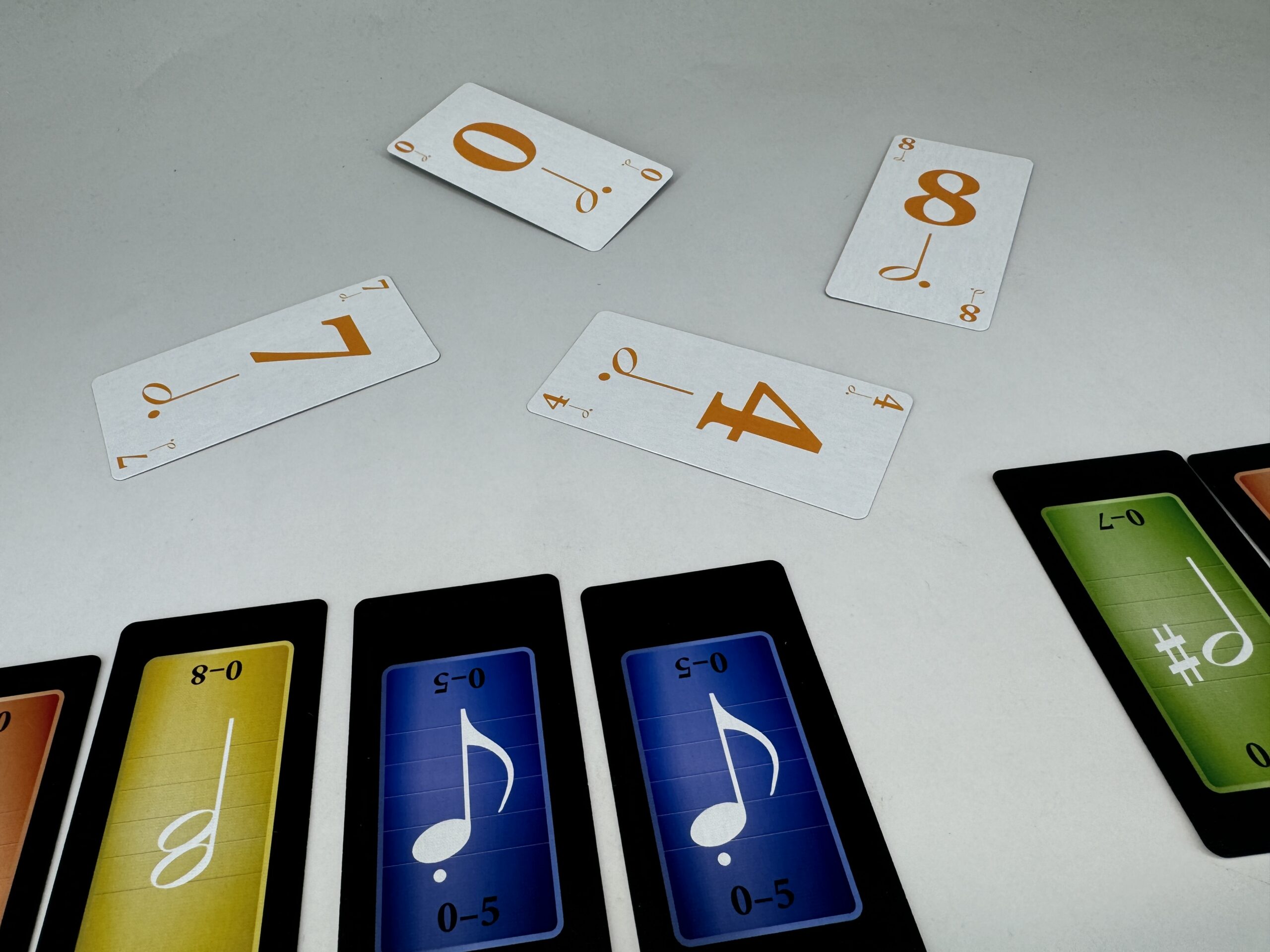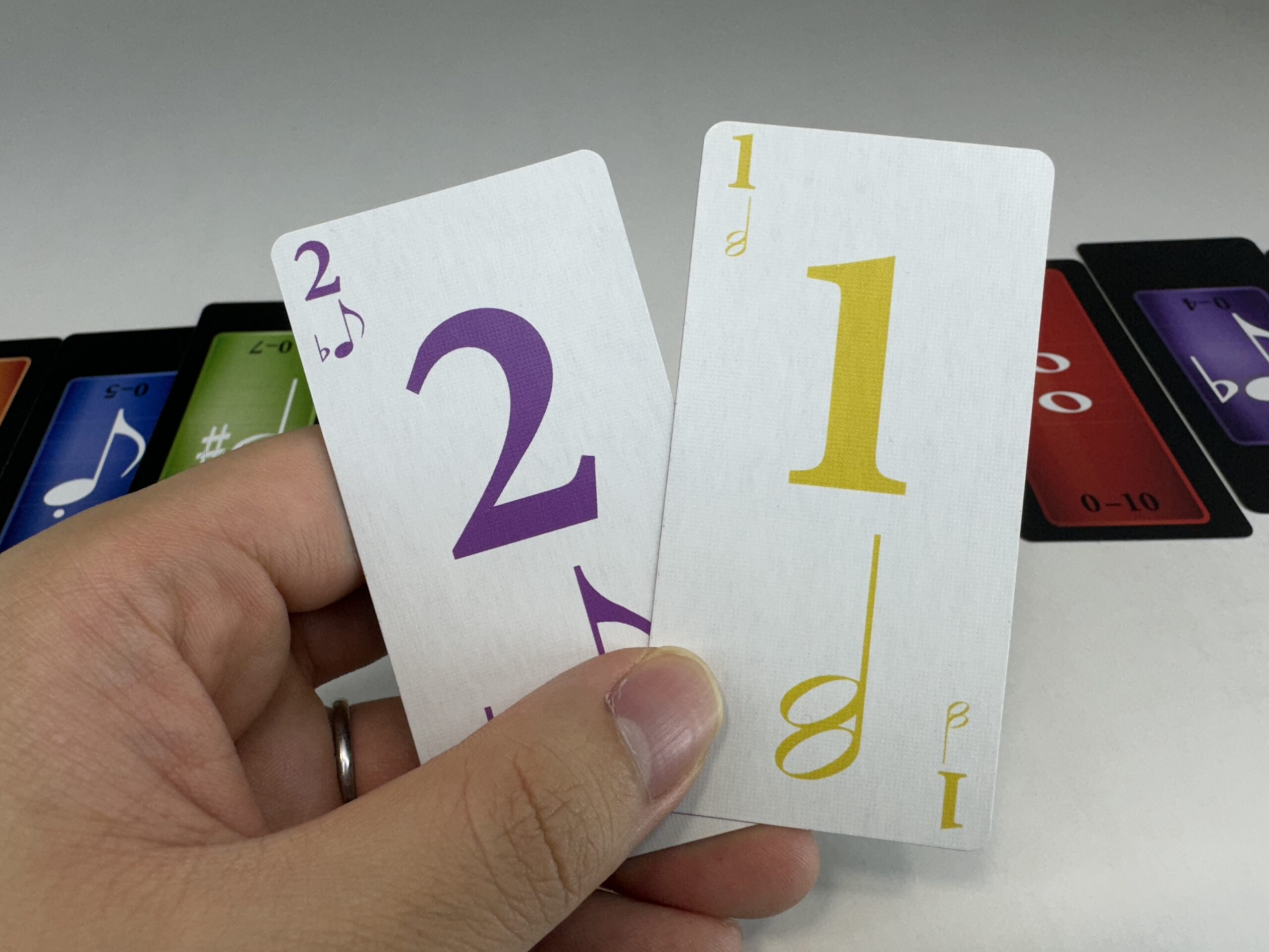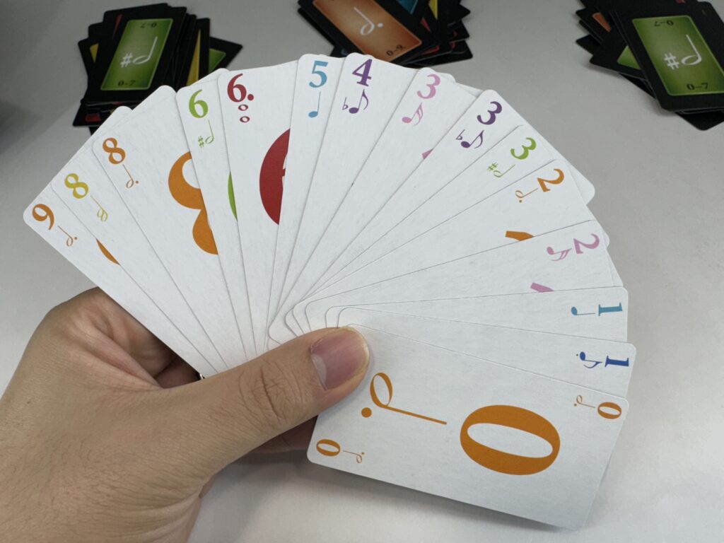 『トリッキー・サウンド』はトリックテイキングゲームとしても尖った部分がありますが、そもそも使用するカードがかなり尖っています。
