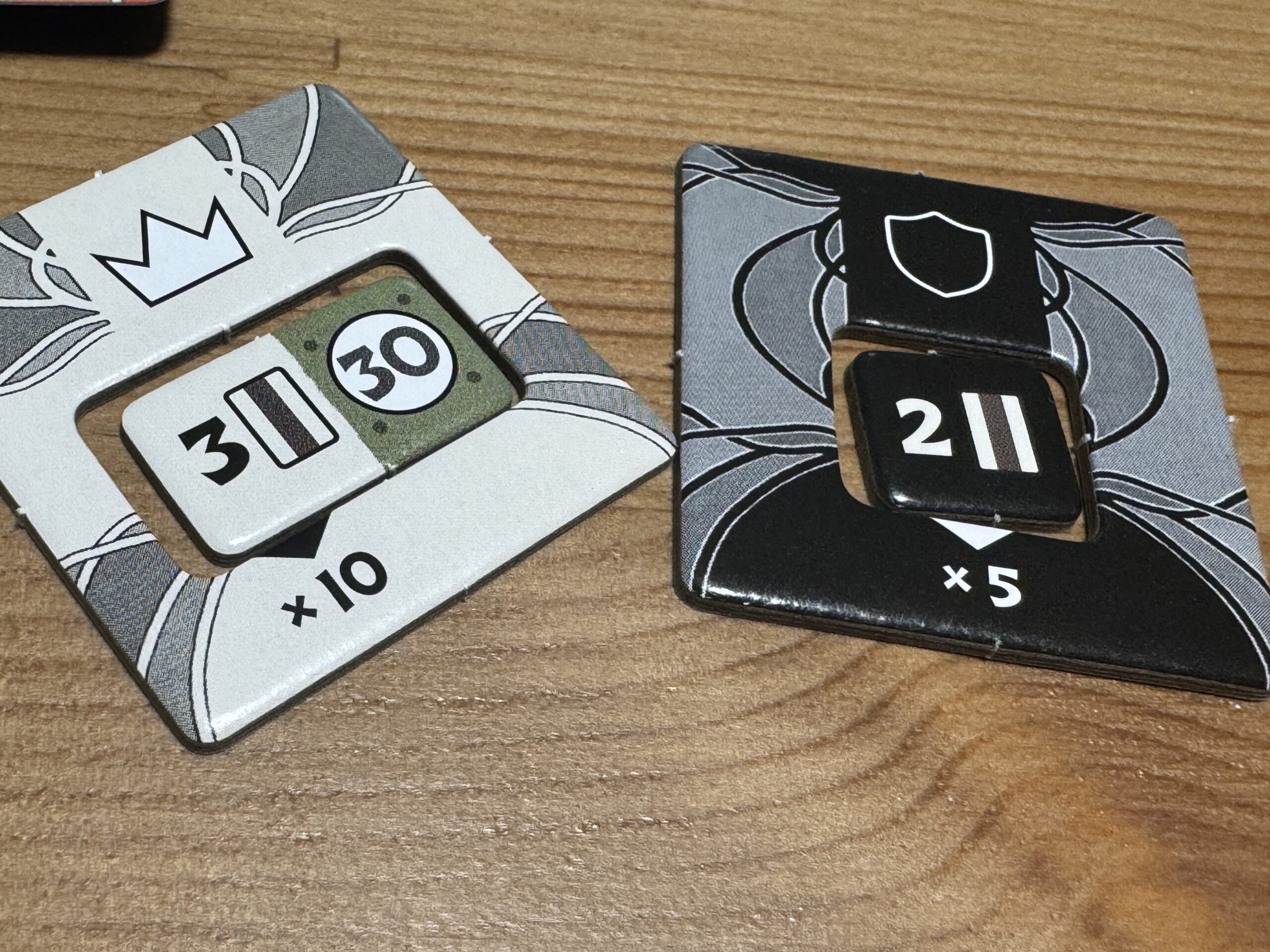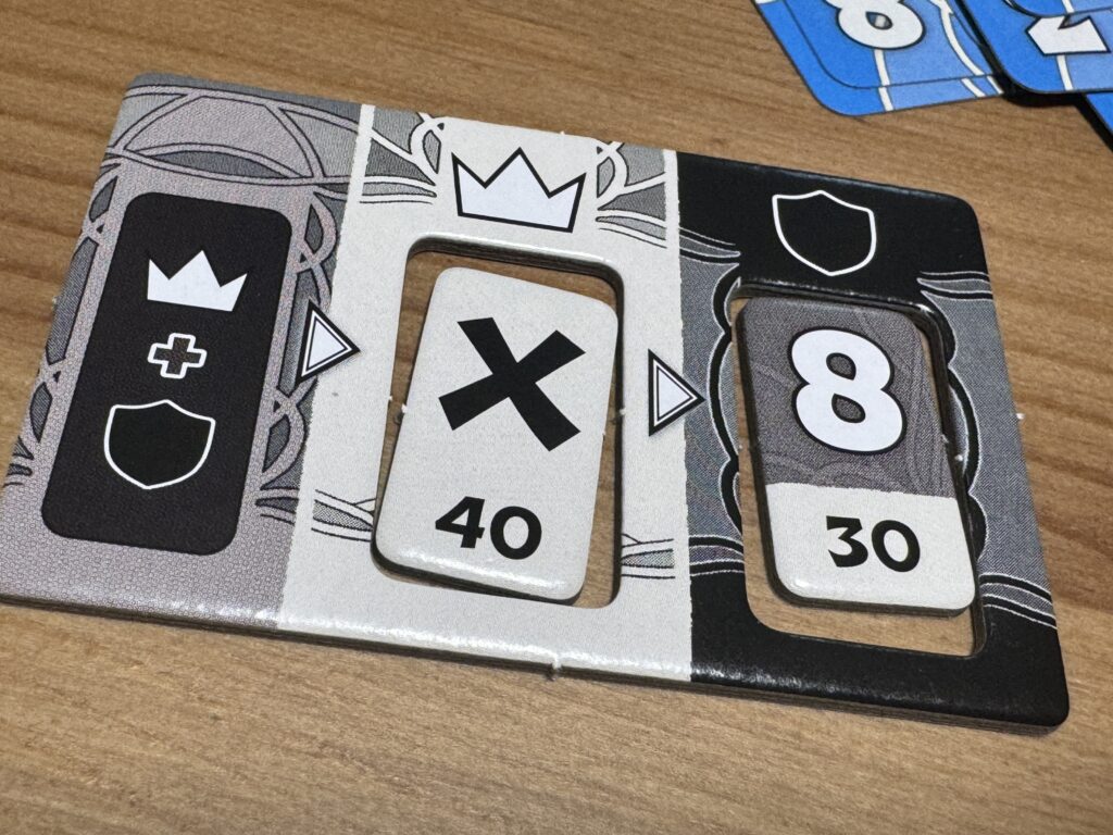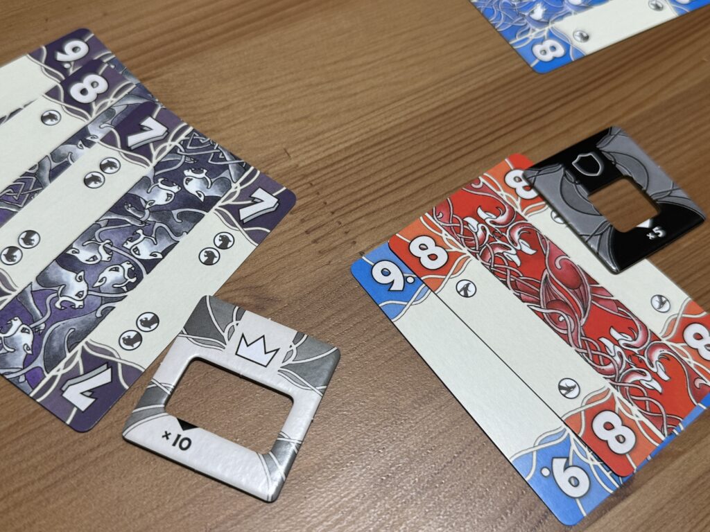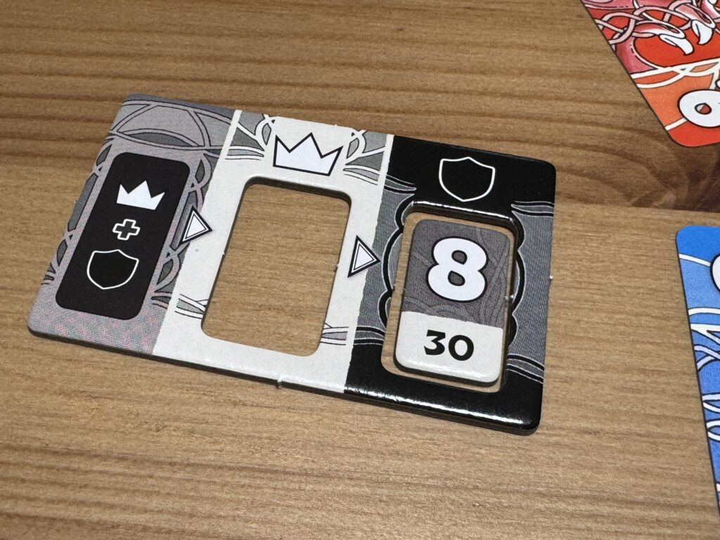 王者と守護者にはそれぞれ専用の「表示タイル」というものがありまして、ここに自分が公開した手札の枚数に応じたチップをはめておきましょう。