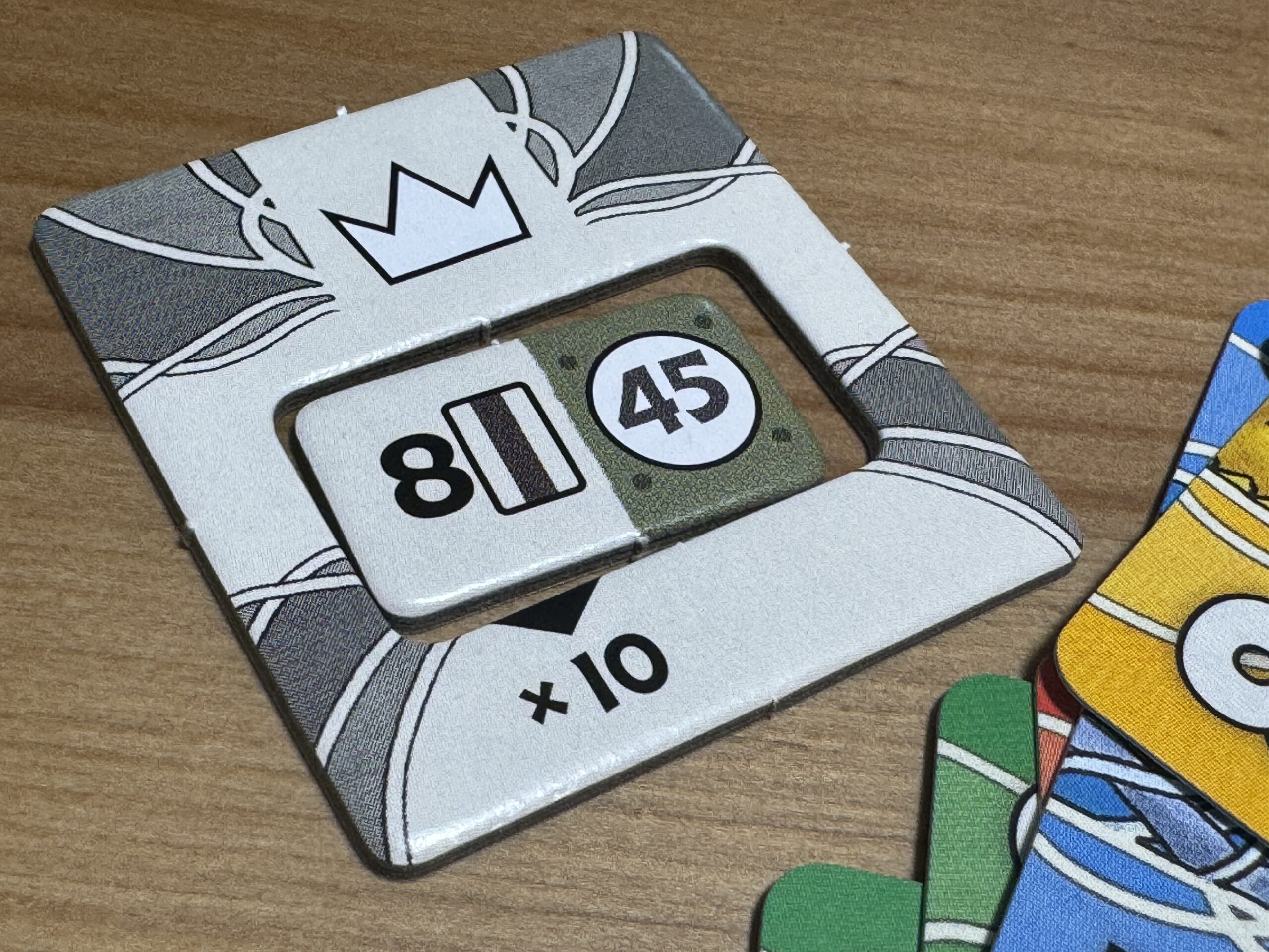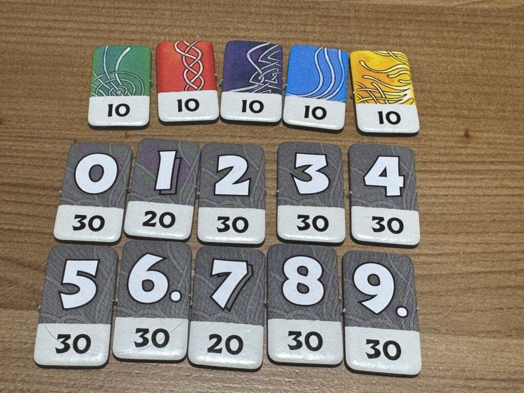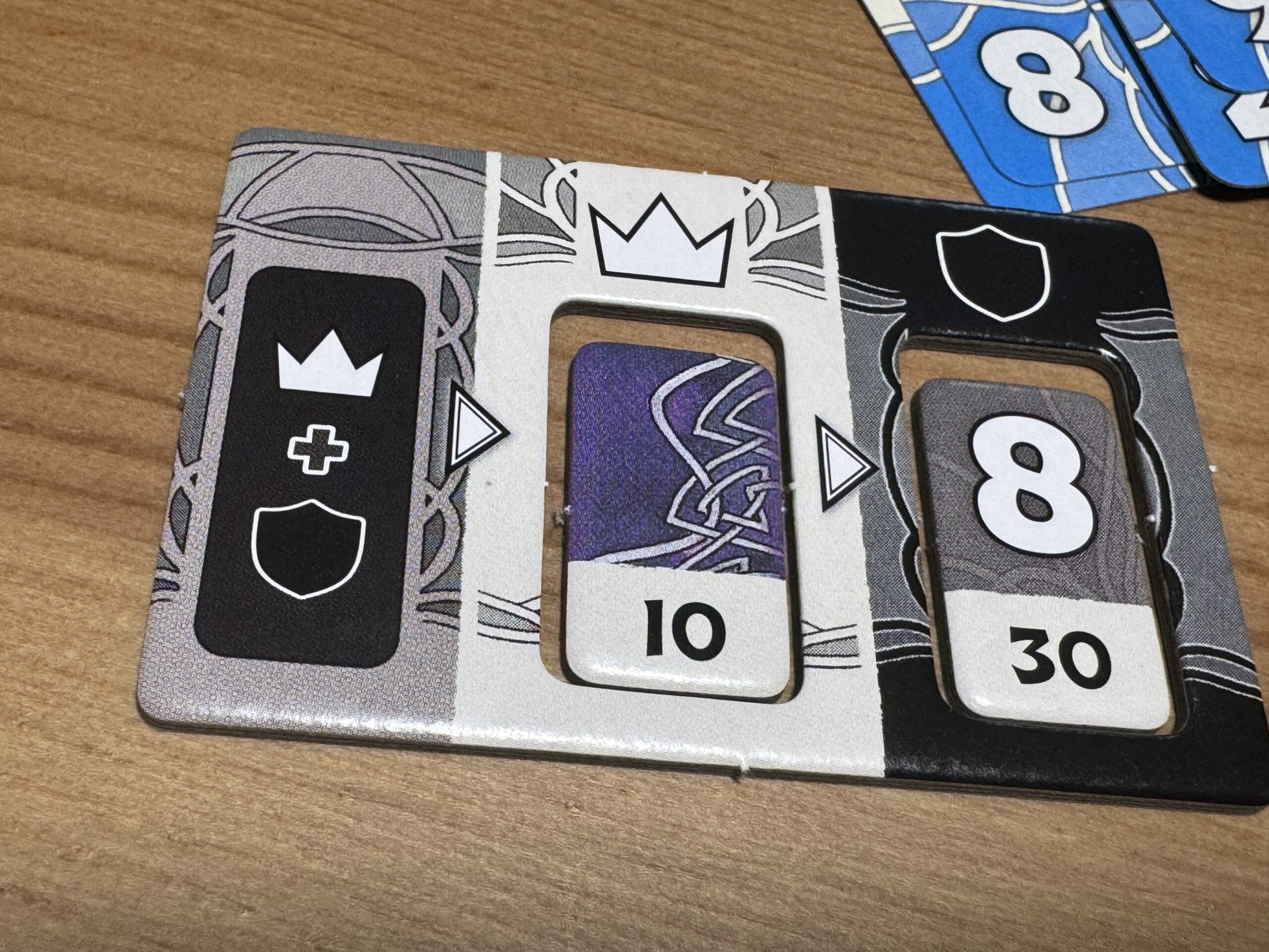 王者と守護者にはそれぞれ専用の「表示タイル」というものがありまして、ここに自分が公開した手札の枚数に応じたチップをはめておきましょう。