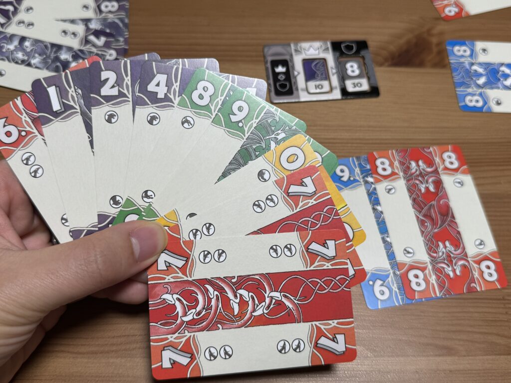その高度な駆け引きが、「自分が/他者が手札から何を公開するか」っていう情報だけから醸し出され続けるの、めちゃくちゃ良いです。
