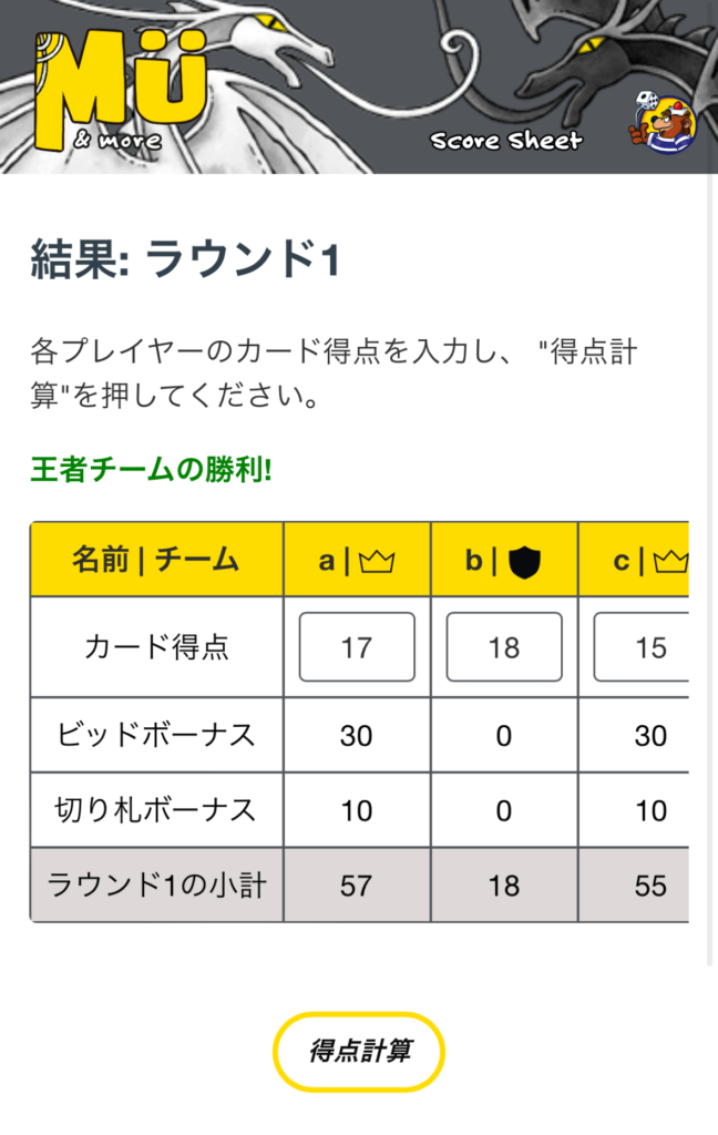 専用のオンライン得点計算ツールがありまして、そちらをご使用いただくと点数記録も楽々です。