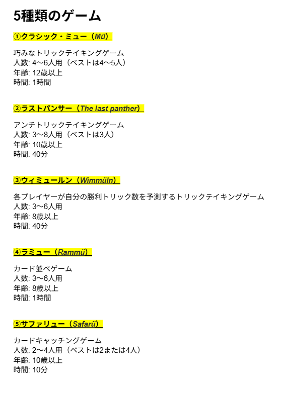 ・メインコンテンツ:最高トリックテイキングゲーム『ミュー』
