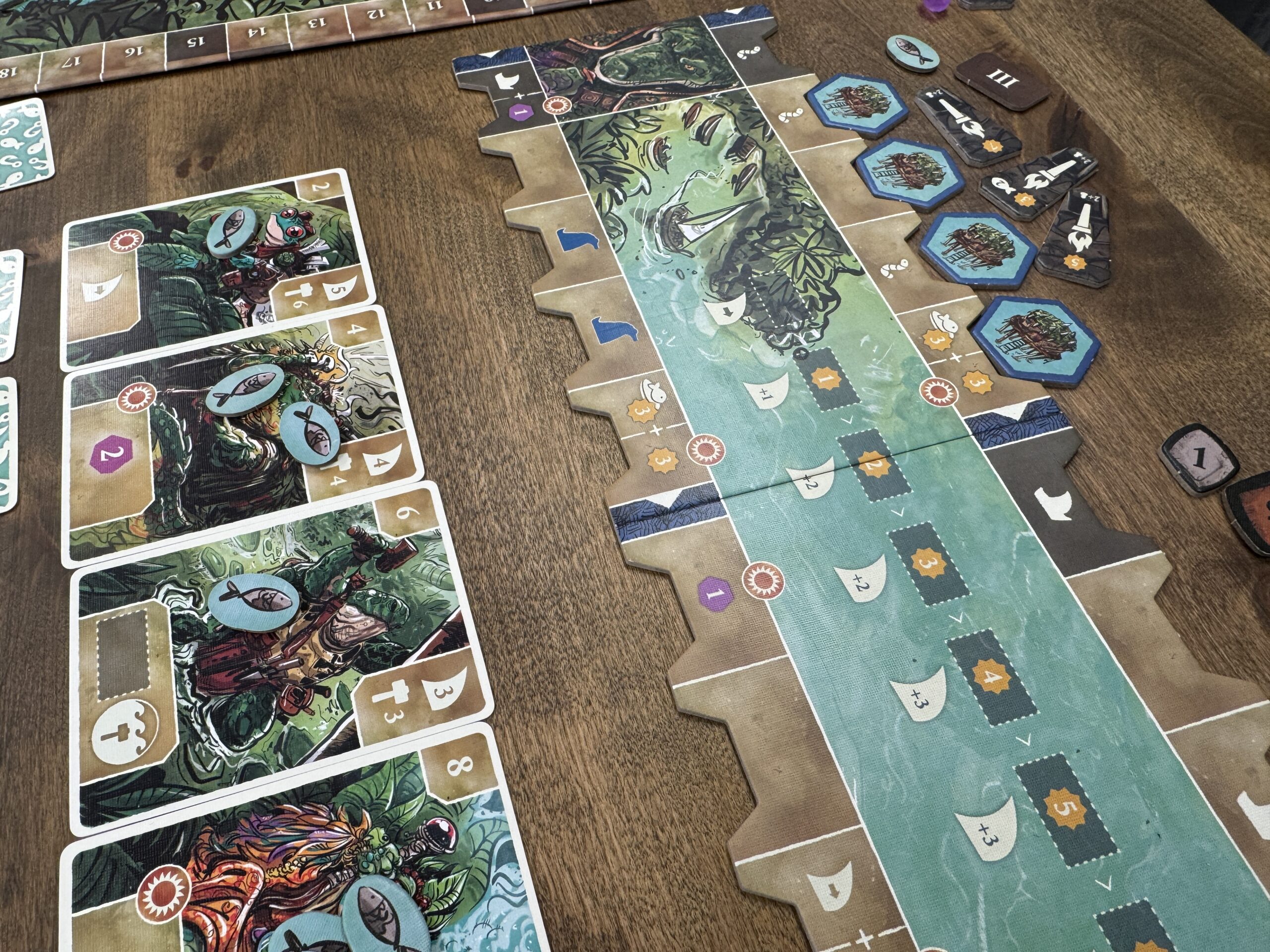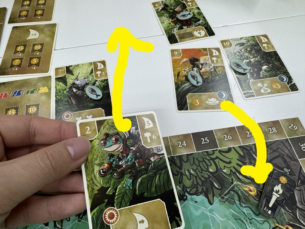 手番順に沿って、そこから3枚を沼へと置きます。