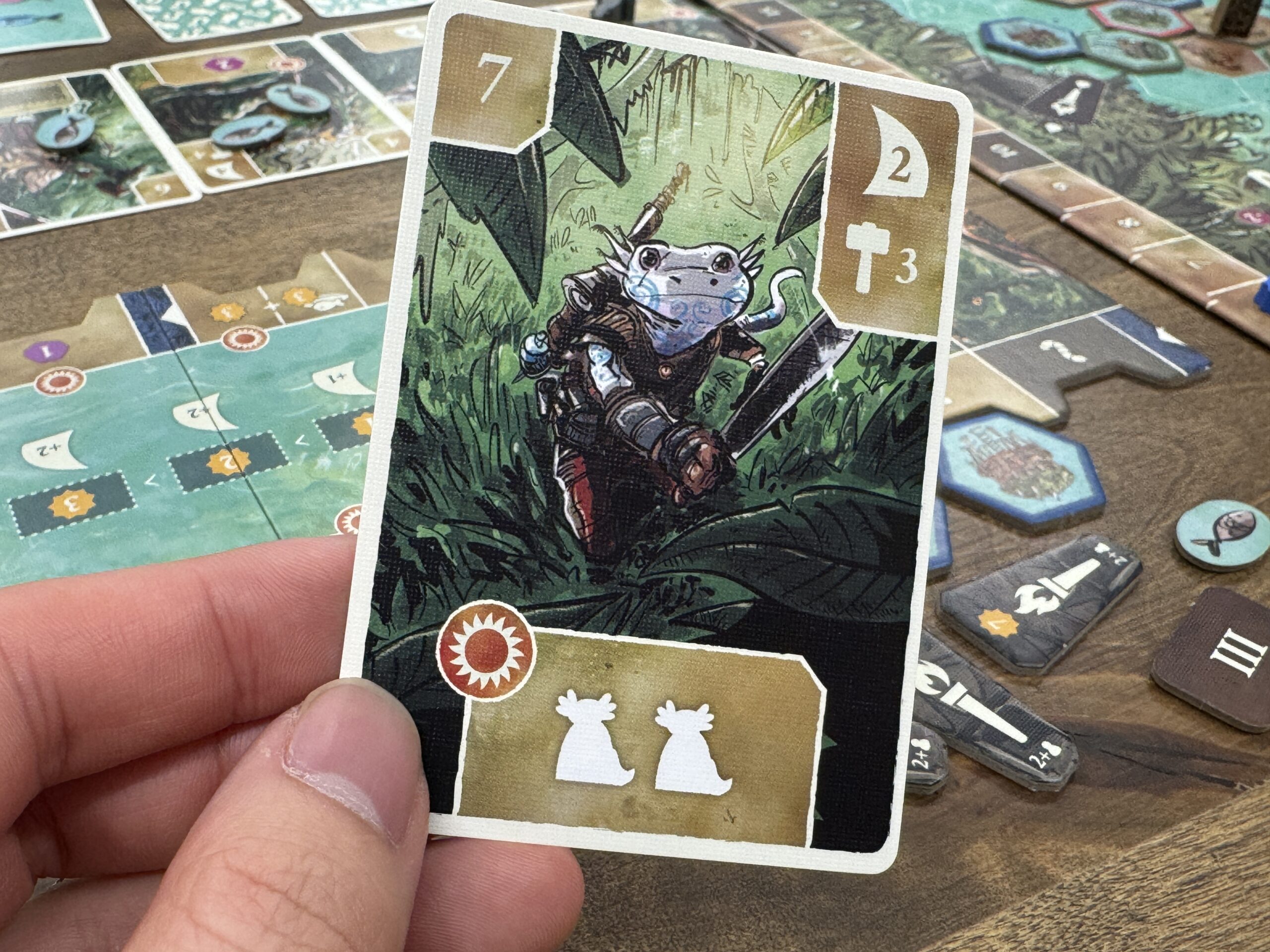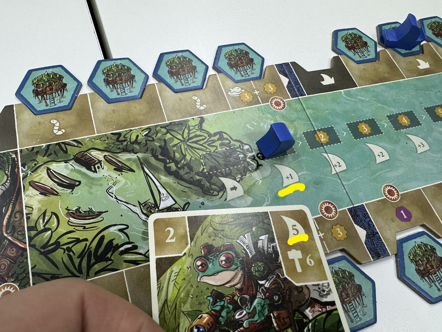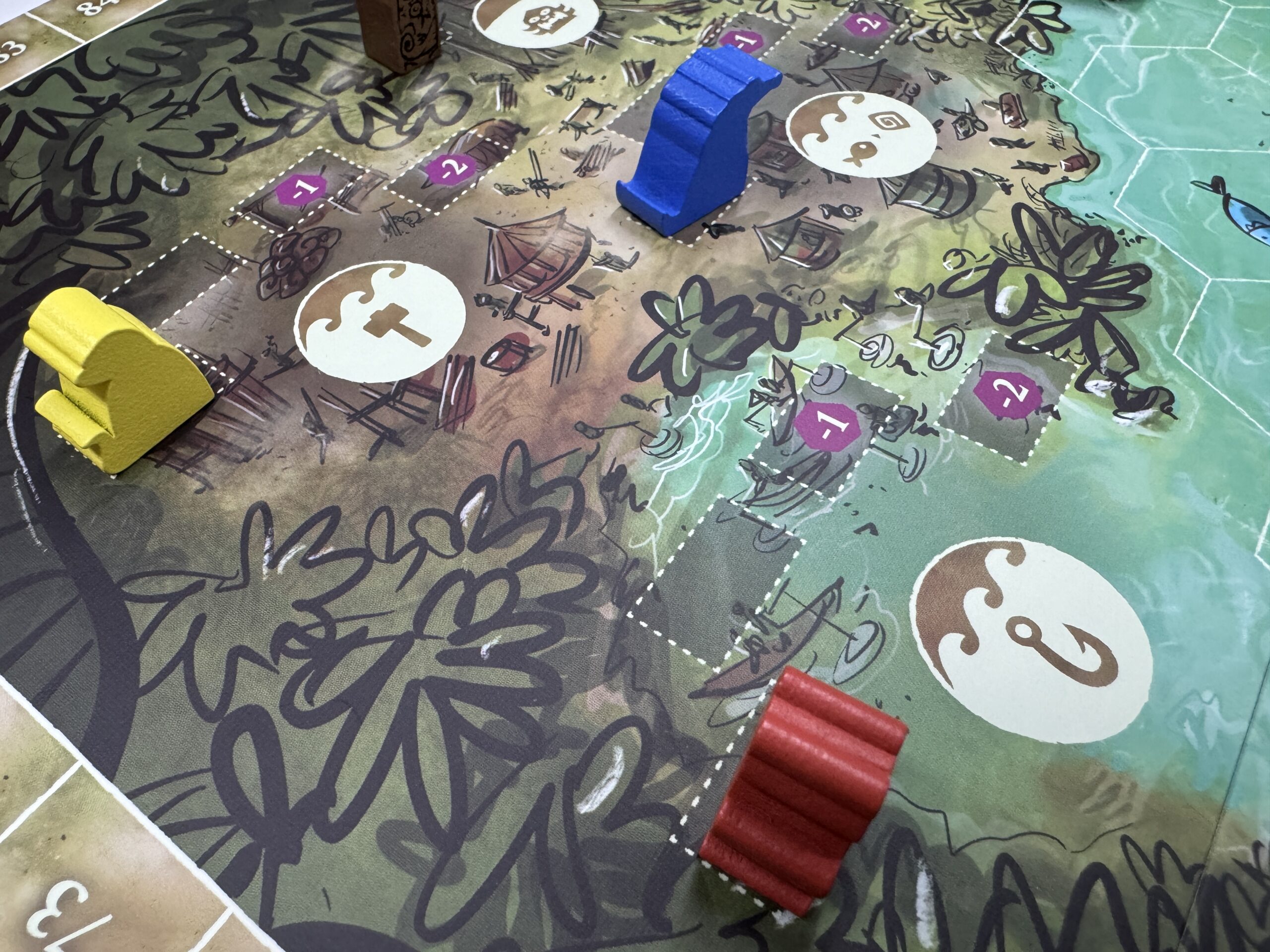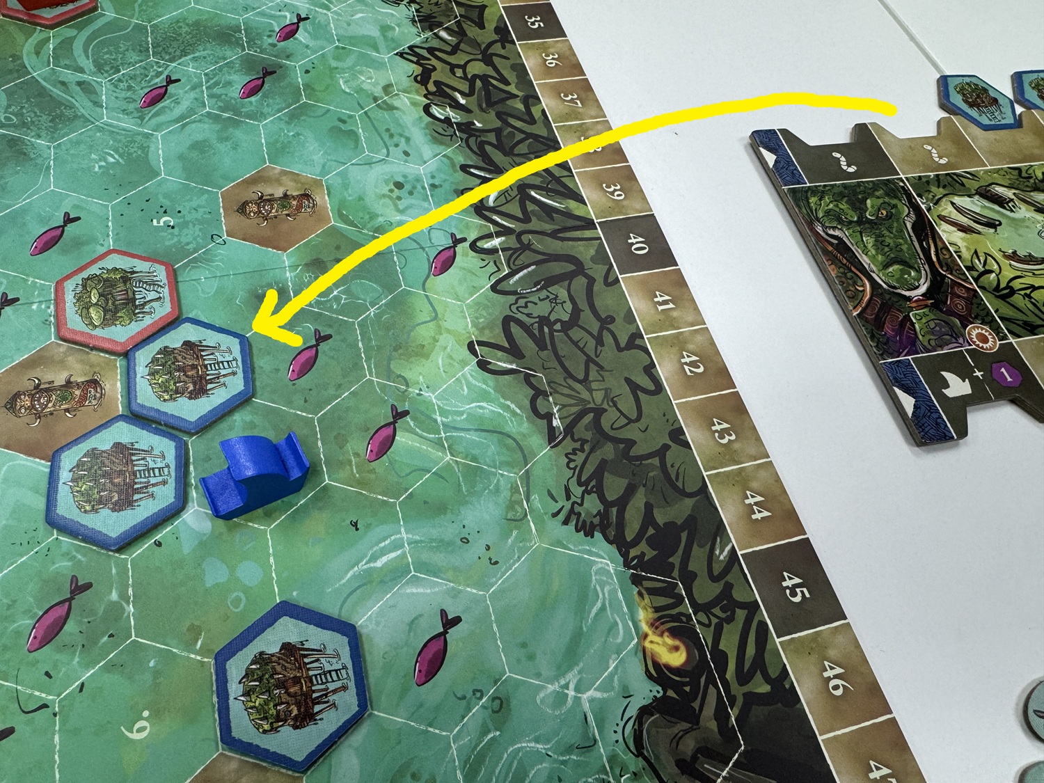自分の氏族ボードの周りにある開拓地タイルを、沼へと出すことができます。