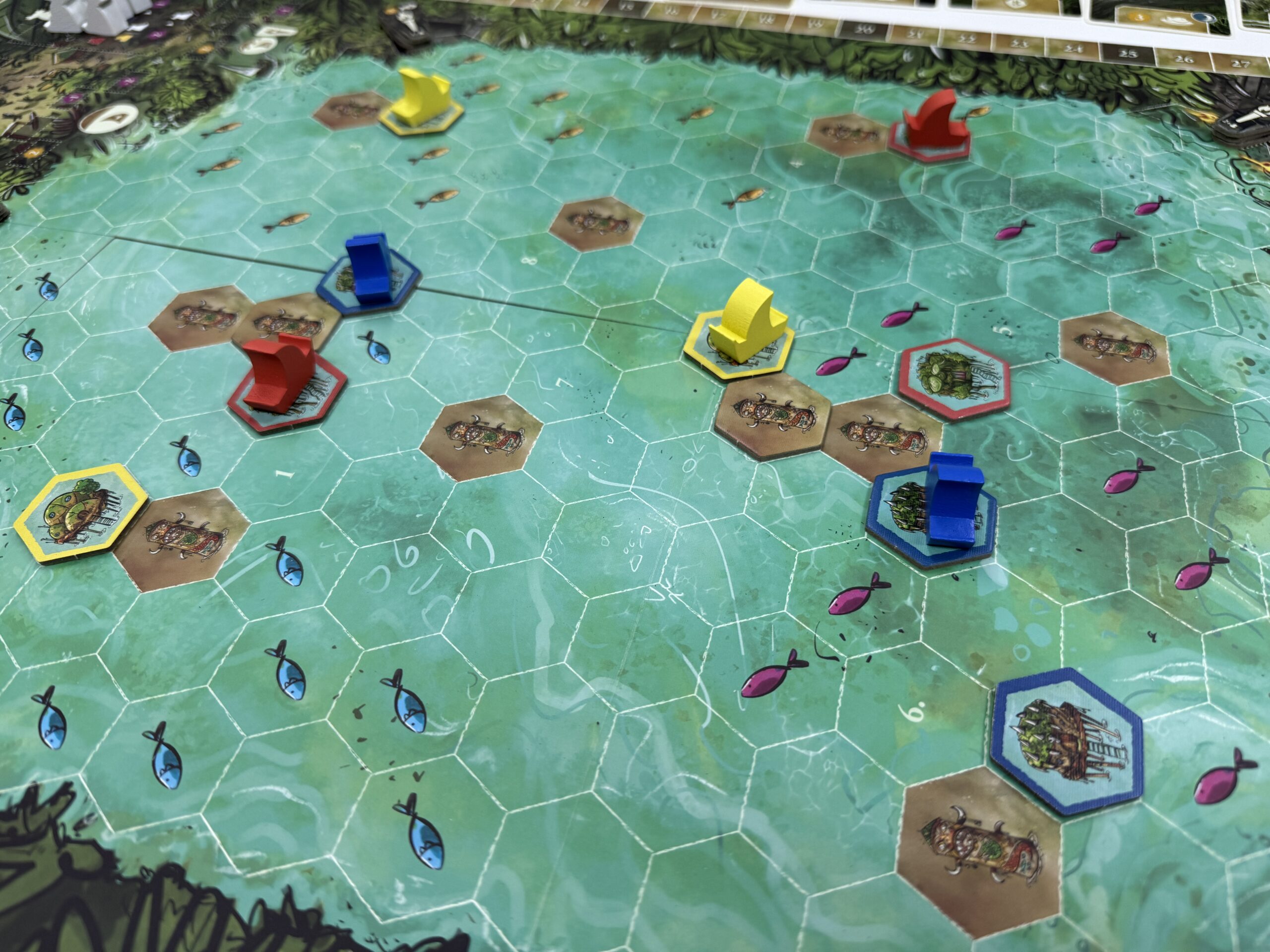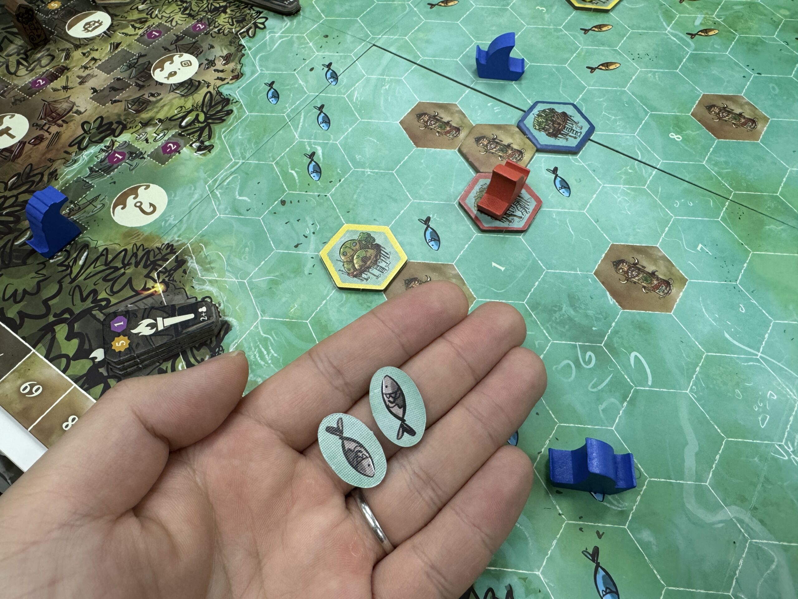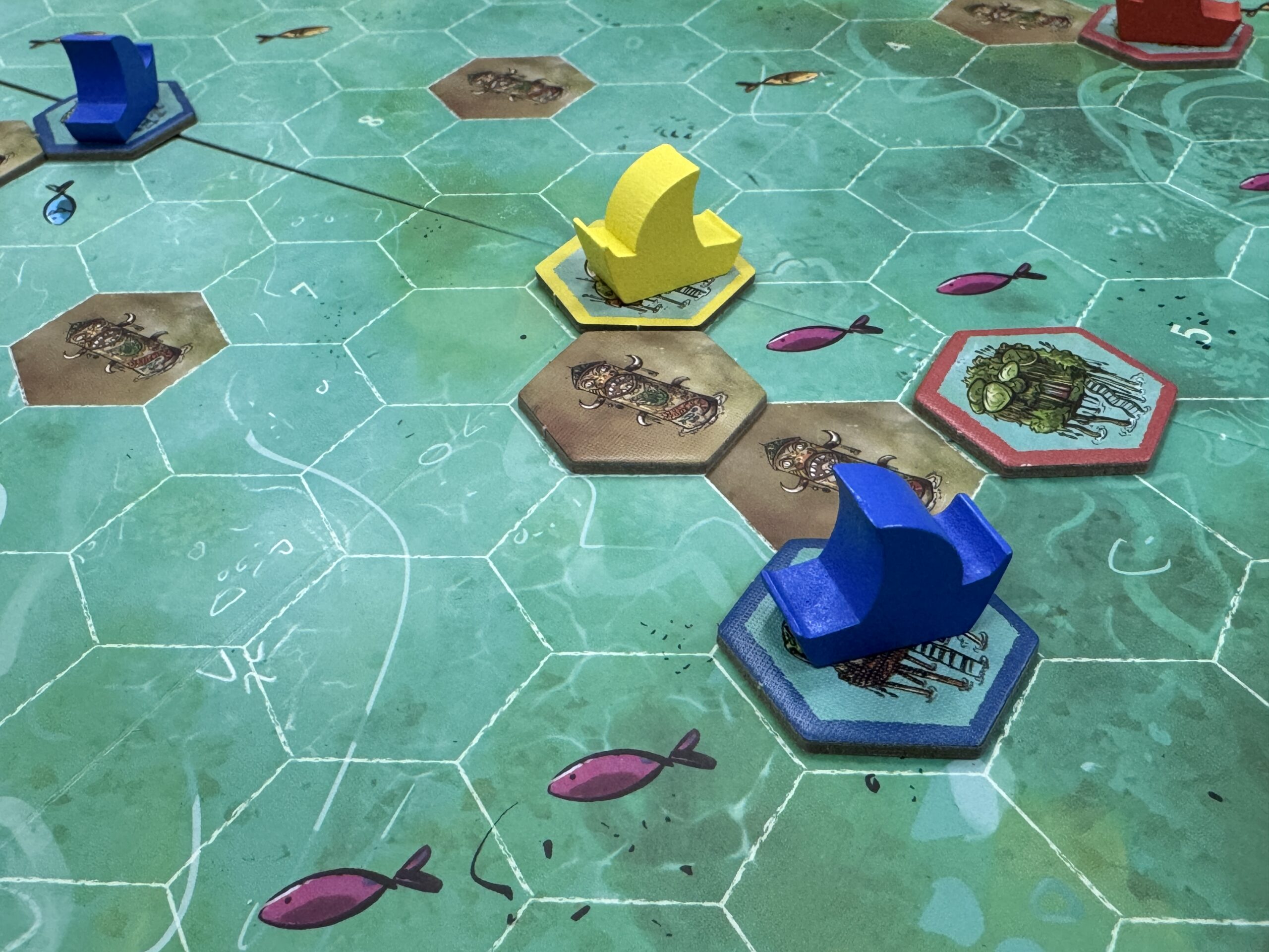 今回の手番で魚を置いちゃうと、ちょっと次の人が祝祭強すぎるか……とかね!
