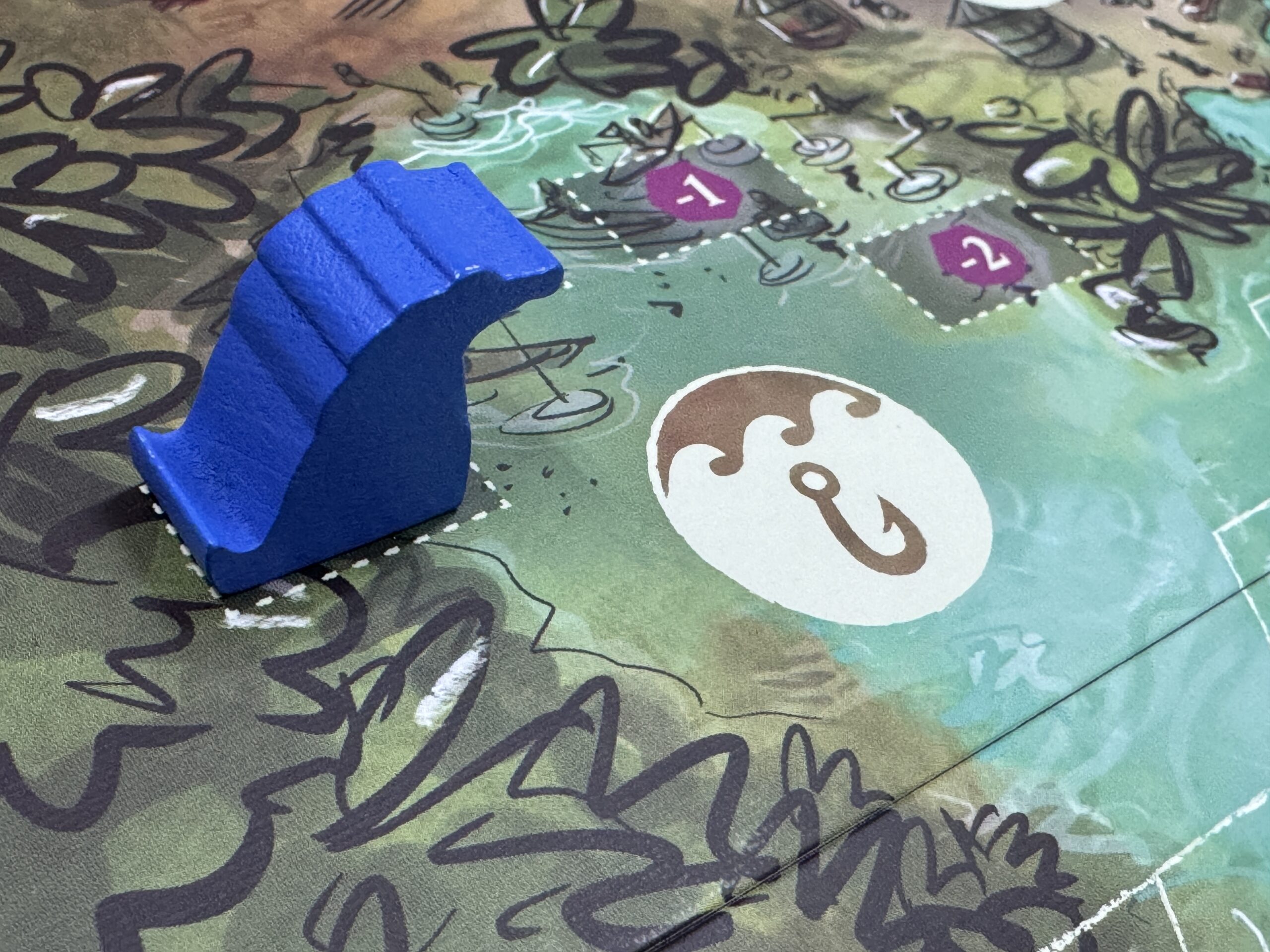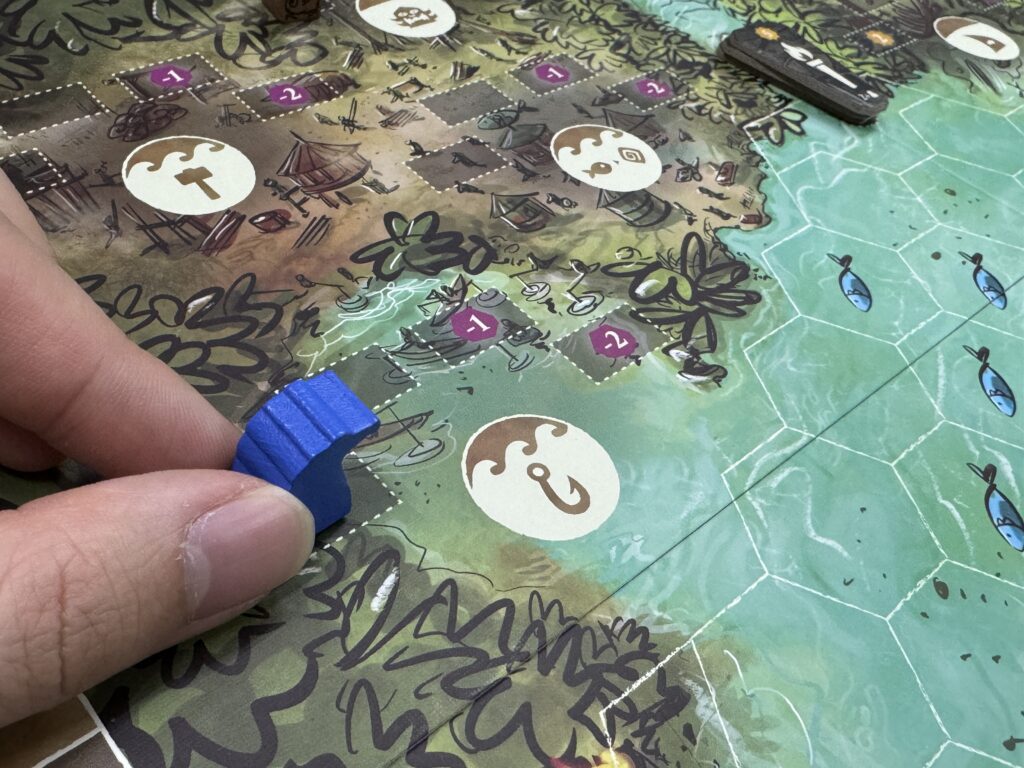 持っている魚を、沼地にある開拓地タイル上へと置いていくアクションです。