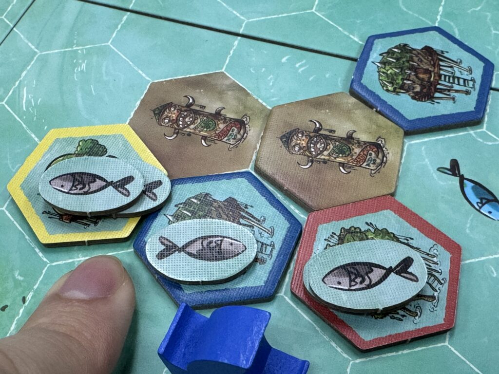 魚が置かれているタイルの枚数に応じた勝利点を得て、